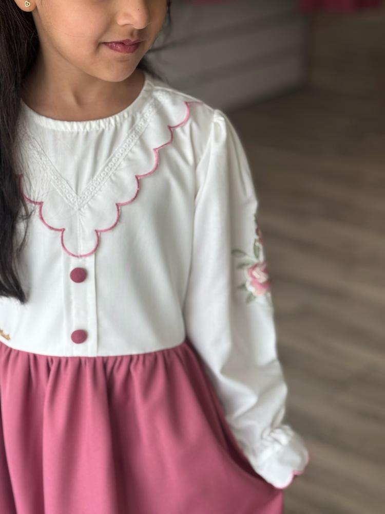 - تصميم زي مدرسي ابتدائي وردي أنيق باللون الوردي يضيف لمسة جميلة.