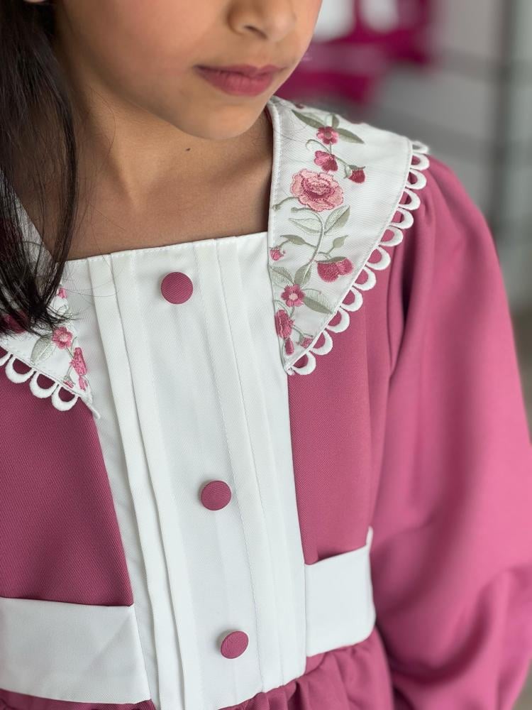 - تصميم زي بناتي مدرسي أنيق باللون الوردي يضيف لمسة جمالية.