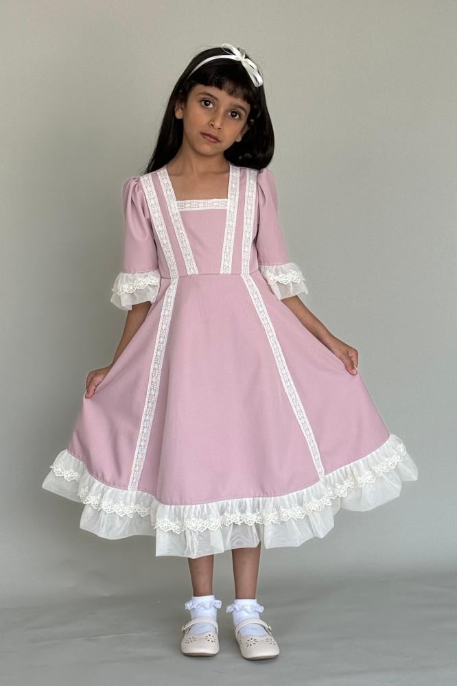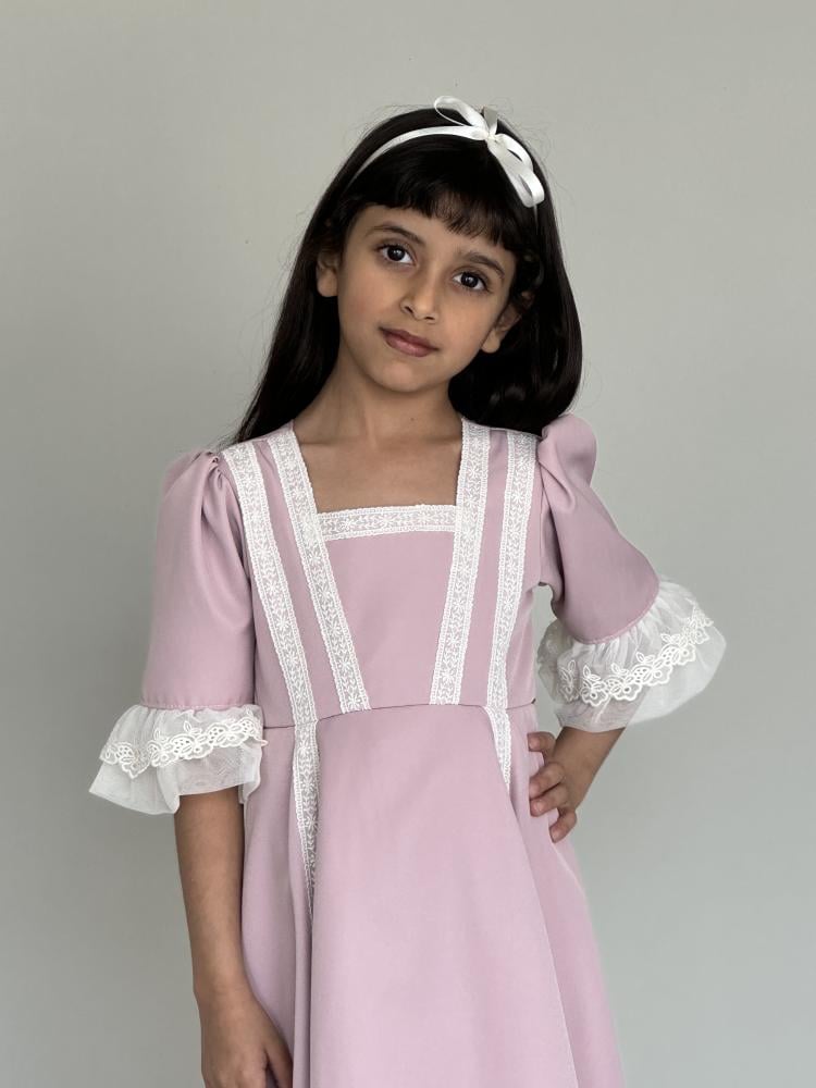 This pink girls' dress with white lace accents is the perfect choice for mothers seeking elegance and comfort at the same time. Its stunning design and high-quality materials make it a distinctive addition to your little girl's wardrobe. Don't miss out on this opportunity to make your little one radiate beauty and elegance for every occasion.